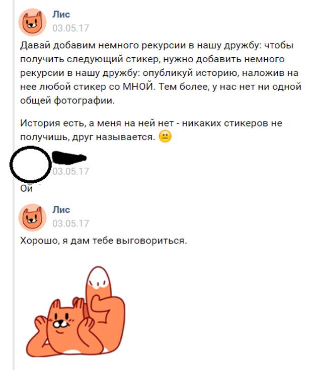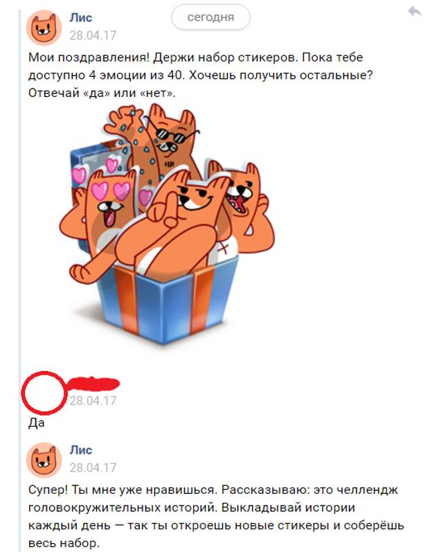 Значит, это все неправда и стикеры с Лисом безопасны?Чтобы вы убедились в безопасности Лиса и бредовости всей этой ситуации, вот вам полный список заданий от зверька, никаких намеков на что-то негативное: