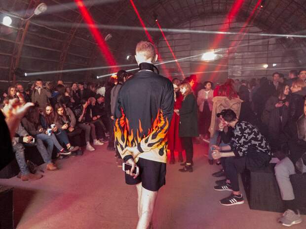 Первой очень громкой и фееричной стала презентация новой коллекции бренда ВОЛЧОК под названием «Смертельная битва», которая перенесла нас во времена «без этих ваших интернетов с мемчиками, каналами на ютьюбе», зато с времяпрепровождением с друзьями во дворе и главное — с игрой в «Мортал Комбат» на приставке, которую ты выклянчил у родителей за хорошие оценки.