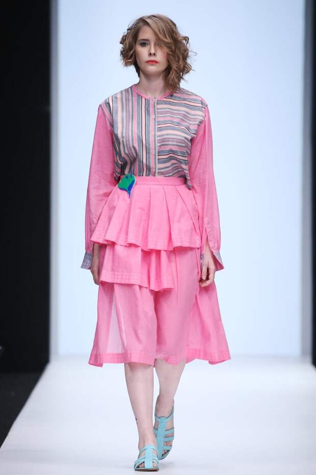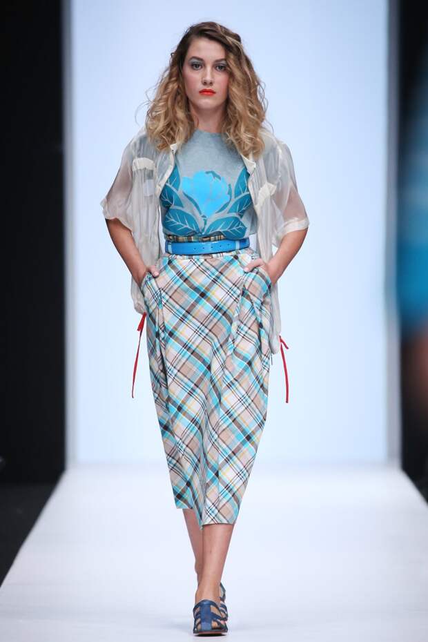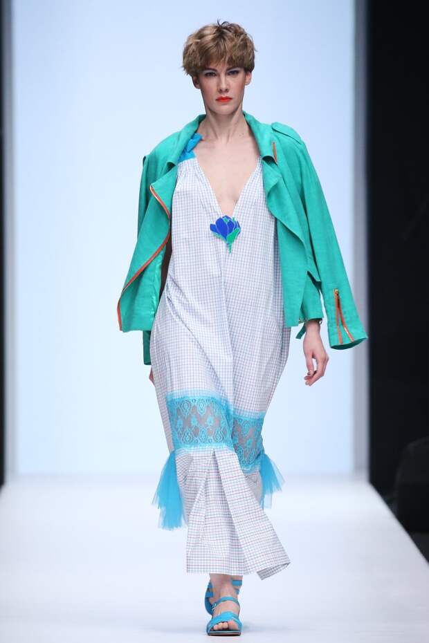 Эмоциональность образов передается не только широкой цветовой гаммой тканей, но и нестандартным смешением фактур. Наряды моделей сшиты из струящегося шелка, дышащего хлопка и костюмной клетчатой ткани, украшены воздушным гипюром нежных тонов. Дизайнер богато декорировала свою коллекцию вышивкой ручной работы, оригинальными деталями и принтами. Именно такое авторское сочетание передает свободный стиль путешественника и солнечное настроение.